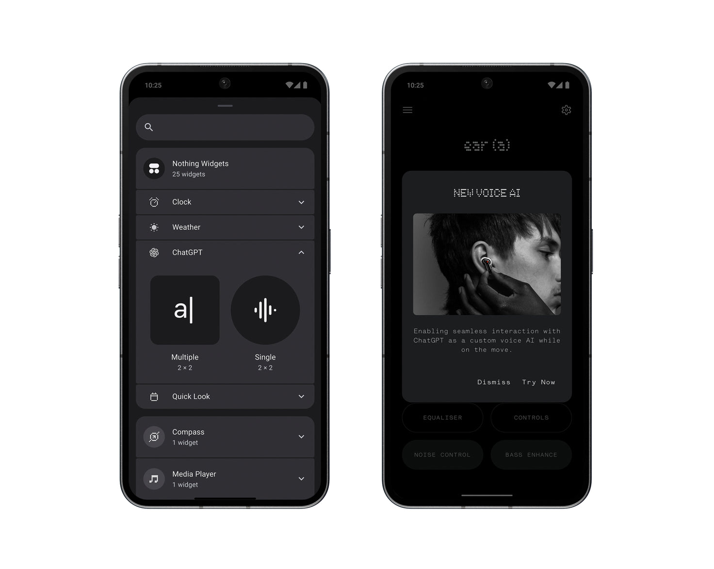 ใช้เสียงของคุณเพื่อเข้าถึง ChatGPT เมื่อจับคู่กับ Ear และ Ear (a) ตั้งค่าผ่านแอป Nothing X จะมาเร็ว ๆ นี้สำหรับ Ear (1), Ear (2) และ Ear (stick)