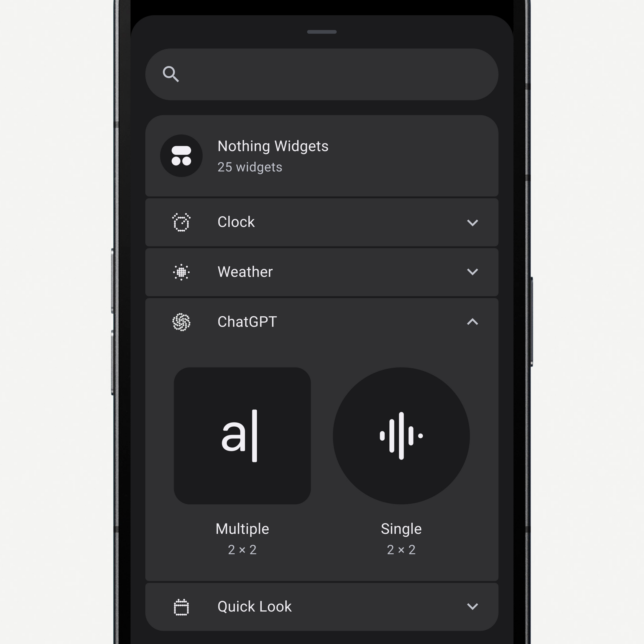 สอบถาม ฟัง และเรียนรู้จาก ChatGPT ขณะเดินทาง การบูรณาการที่เป็นหนึ่งเดียว ทำเพื่อระบบเครือข่าย Nothing ของคุณโดยเฉพาะ มีเฉพาะในหูฟัง Nothing เมื่อเชื่อมต่อกับโทรศัพท์ Nothing เท่านั้น มีให้บริการใน Phone (2) และจะเริ่มต้นใน Phone (1) และ Phone (2a) ผ่านการอัพเดทซอฟต์แวร์เร็ว ๆ นี้