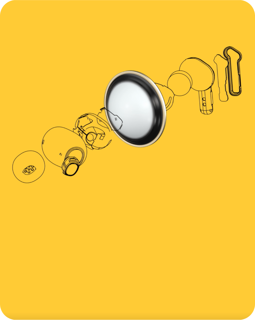 เราได้ทำให้ไดรเวอร์มีขนาดกะทัดรัดยิ่งขึ้น พลังที่มากกว่า Ear (2) ถึงสองเท่า Ear (a) จึงให้เสียงเบสที่นุ่มลึกยิ่งขึ้น